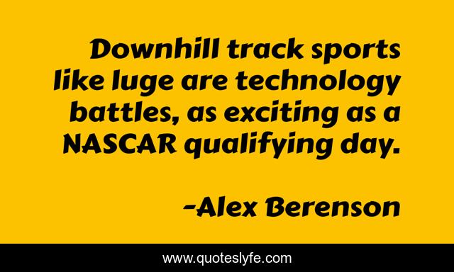 This page presents the quote "Downhill track sports like luge are technology battles, as exciting as a NASCAR qualifying day.". Author of this quote is Alex Berenson. This quote is about technology, day, like,.