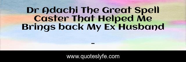 This page presents the quote "Dr Adachi The Great Spell Caster That Helped Me Brings back My Ex Husband". Author of this quote is . This quote is about love, help, back, dead, bring, ex, need, caster, death,.