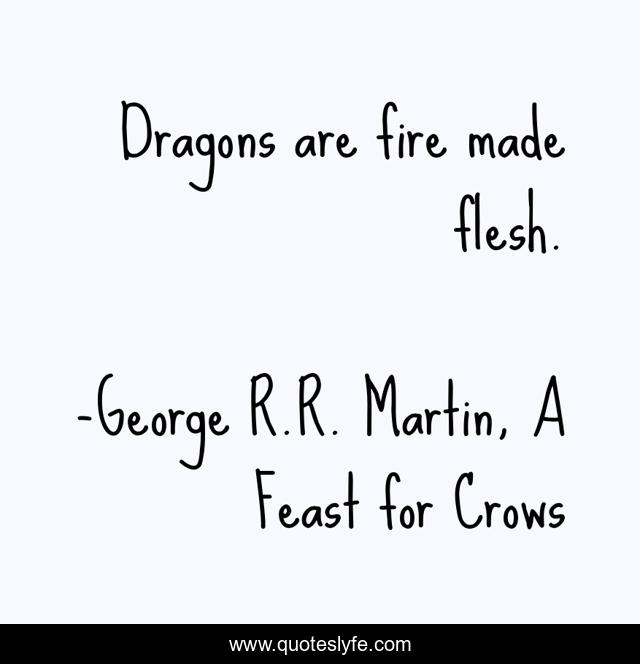 "George R.R. Martin, A Feast for Crows Quotes." Quoteslyfe.com, 2025. Mon. 08 Dec. 2025. <https://www.quoteslyfe.com/quote/Dragons-are-fire-made-flesh-222011>.