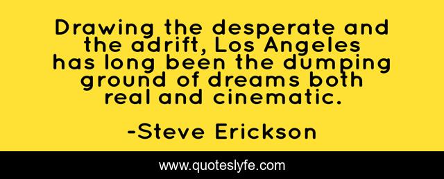 This page presents the quote "Drawing the desperate and the adrift, Los Angeles has long been the dumping ground of dreams both real and cinematic.". Author of this quote is Steve Erickson. This quote is about long, drawing, los angeles,.
