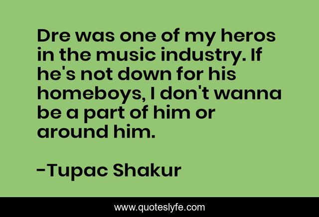 This page presents the quote "Dre was one of my heros in the music industry. If he's not down for his homeboys, I don't wanna be a part of him or around him.". Author of this quote is Tupac Shakur. This quote is about down, him, music industry,.