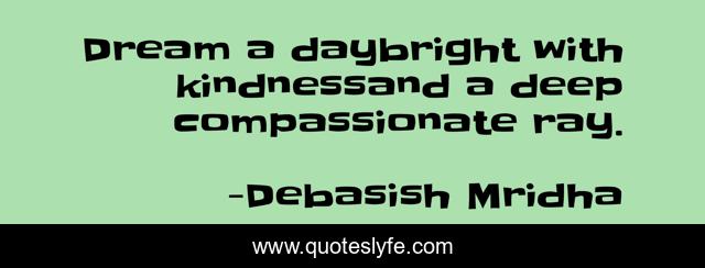 This page presents the quote "Dream a daybright with kindnessand a deep compassionate ray.". Author of this quote is Debasish Mridha. This quote is about life, love, knowledge, inspirational, intelligence, philosophy, wisdom, quotes, affection,.