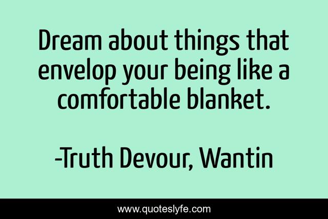 This page presents the quote "Dream about things that envelop your being like a comfortable blanket.". Author of this quote is Truth Devour, Wantin. This quote is about security, comfort, dreams,.