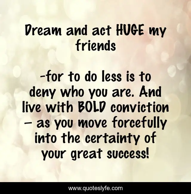 "for to do less is to deny who you are. And live with BOLD conviction – as you move forcefully into the certainty of your great success! Quotes." Quoteslyfe.com, 2025. Fri. 05 Dec. 2025. <https://www.quoteslyfe.com/quote/Dream-and-act-HUGE-my-friends-242856>.