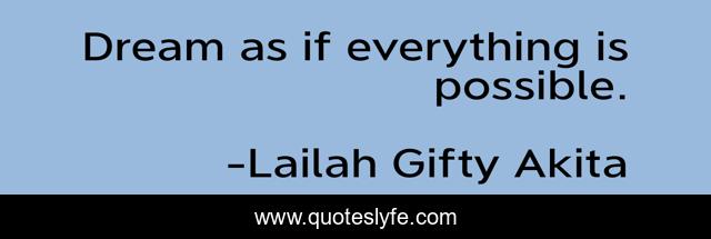 "Lailah Gifty Akita Quotes." Quoteslyfe.com, 2025. Fri. 05 Dec. 2025. <https://www.quoteslyfe.com/quote/Dream-as-if-everything-is-possible-53926>.