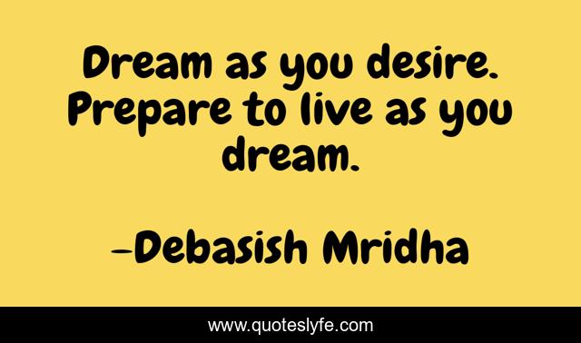 "Debasish Mridha Quotes." Quoteslyfe.com, 2025. Sat. 06 Dec. 2025. <https://www.quoteslyfe.com/quote/Dream-as-you-desire-Prepare-to-live-74665>.