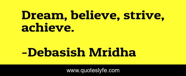 "Debasish Mridha Quotes." Quoteslyfe.com, 2025. Mon. 08 Dec. 2025. <https://www.quoteslyfe.com/quote/Dream-believe-strive-achieve-131180>.