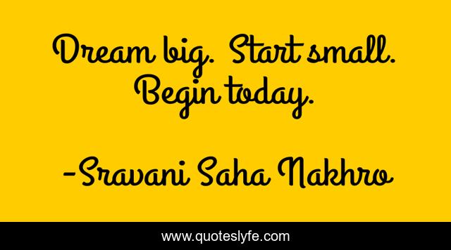 "Sravani Saha Nakhro Quotes." Quoteslyfe.com, 2025. Sun. 07 Dec. 2025. <https://www.quoteslyfe.com/quote/Dream-big-Start-small-Begin-today-243950>.