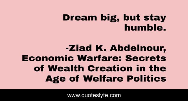 "Ziad K. Abdelnour, Economic Warfare: Secrets of Wealth Creation in the Age of Welfare Politics Quotes." Quoteslyfe.com, 2025. Sat. 06 Dec. 2025. <https://www.quoteslyfe.com/quote/Dream-big-but-stay-humble-131371>.