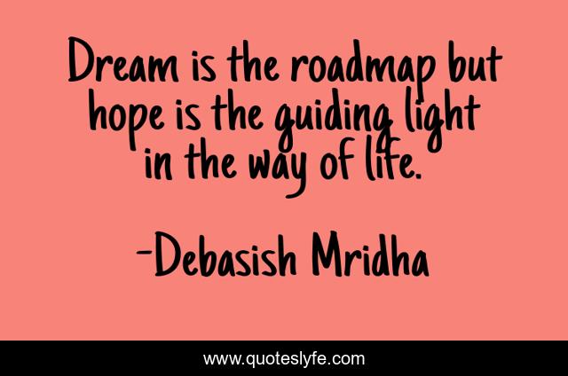 This page presents the quote "Dream is the roadmap but hope is the guiding light in the way of life.". Author of this quote is Debasish Mridha. This quote is about life, love, knowledge, inspirational, intelligence, philosophy, wisdom, affection, truth,.