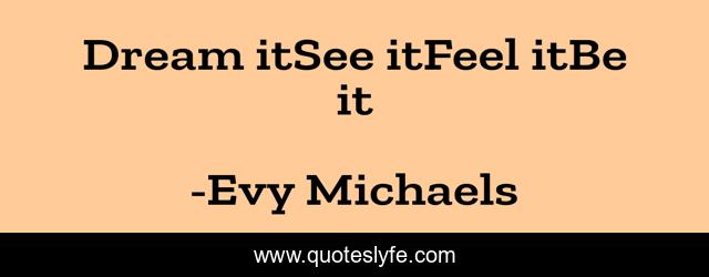 "Evy Michaels Quotes." Quoteslyfe.com, 2025. Sat. 06 Dec. 2025. <https://www.quoteslyfe.com/quote/Dream-itSee-itFeel-itBe-it-130938>.