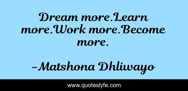"Matshona Dhliwayo Quotes." Quoteslyfe.com, 2025. Fri. 05 Dec. 2025. <https://www.quoteslyfe.com/quote/Dream-more-Learn-more-Work-more-Become-98326>.