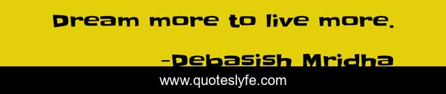 "Debasish Mridha Quotes." Quoteslyfe.com, 2025. Mon. 08 Dec. 2025. <https://www.quoteslyfe.com/quote/Dream-more-to-live-more-23310>.