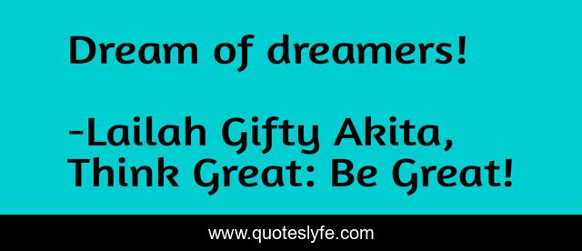 "Lailah Gifty Akita, Think Great: Be Great! Quotes." Quoteslyfe.com, 2025. Sat. 06 Dec. 2025. <https://www.quoteslyfe.com/quote/Dream-of-dreamers-124088>.