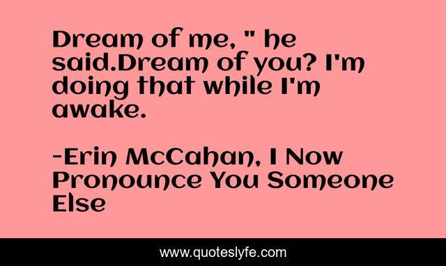 This page presents the quote "Dream of me, " he said.Dream of you? I'm doing that while I'm awake.". Author of this quote is Erin McCahan, I Now Pronounce You Someone Else. This quote is about sweet, love, dreams, affection,.