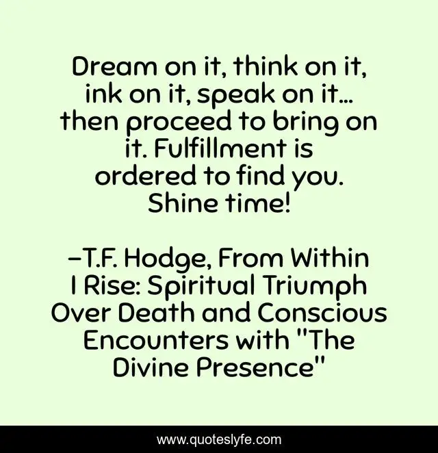 "T.F. Hodge, From Within I Rise: Spiritual Triumph Over Death and Conscious Encounters with "The Divine Presence" Quotes." Quoteslyfe.com, 2025. Sat. 06 Dec. 2025. <https://www.quoteslyfe.com/quote/Dream-on-it-think-on-it-ink-126167>.