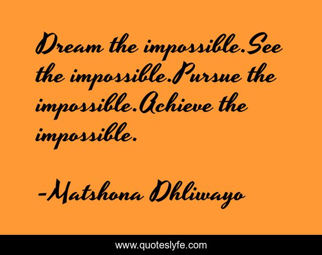 "Matshona Dhliwayo Quotes." Quoteslyfe.com, 2025. Mon. 08 Dec. 2025. <https://www.quoteslyfe.com/quote/Dream-the-impossible-See-the-impossible-Pursue-109103>.