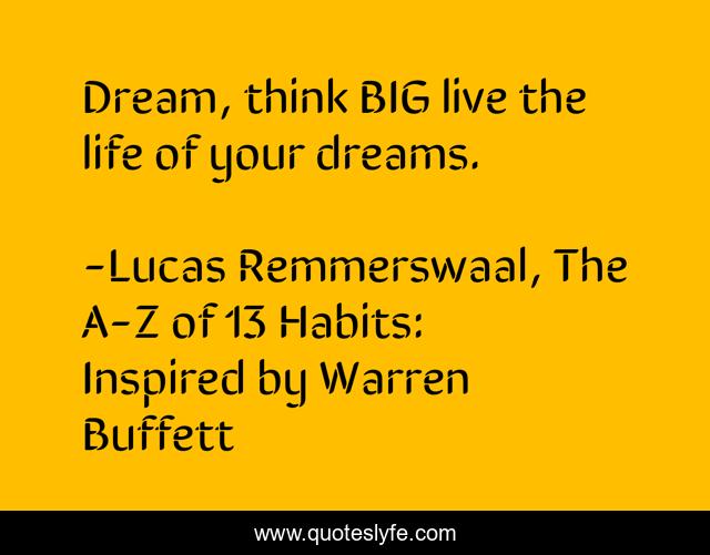 "Lucas Remmerswaal, The A-Z of 13 Habits: Inspired by Warren Buffett Quotes." Quoteslyfe.com, 2025. Tue. 09 Dec. 2025. <https://www.quoteslyfe.com/quote/Dream-think-BIG-live-the-life-of-130901>.