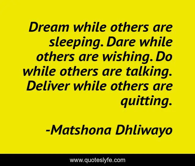 "Matshona Dhliwayo Quotes." Quoteslyfe.com, 2025. Fri. 05 Dec. 2025. <https://www.quoteslyfe.com/quote/Dream-while-others-are-sleeping-Dare-while-15346>.