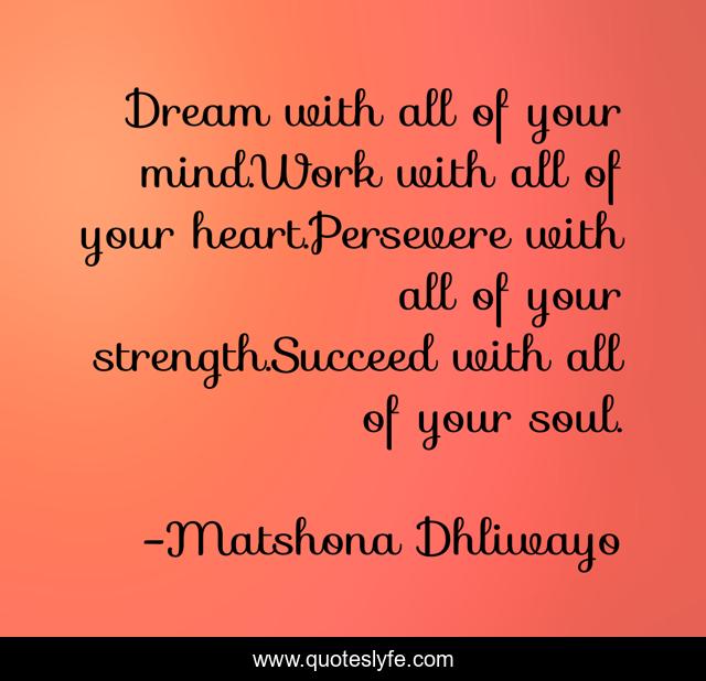 Dream with all of your mind.Work with all of your heart.Persevere with all of your strength.Succeed with all of your soul.