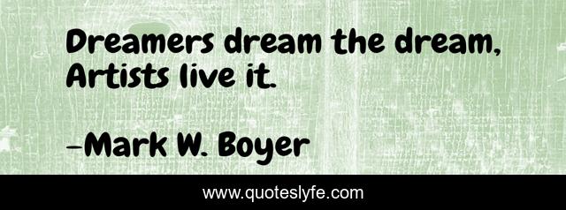 "Mark W. Boyer Quotes." Quoteslyfe.com, 2025. Sat. 06 Dec. 2025. <https://www.quoteslyfe.com/quote/Dreamers-dream-the-dream-Artists-live-it-141324>.