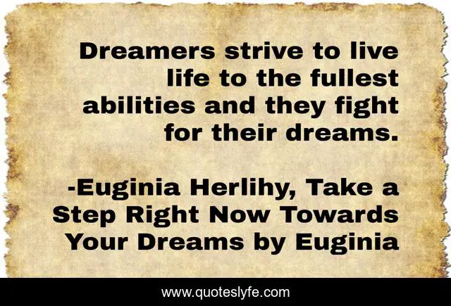 "Euginia Herlihy, Take a Step Right Now Towards Your Dreams by Euginia Quotes." Quoteslyfe.com, 2025. Mon. 08 Dec. 2025. <https://www.quoteslyfe.com/quote/Dreamers-strive-to-live-life-to-the-280589>.