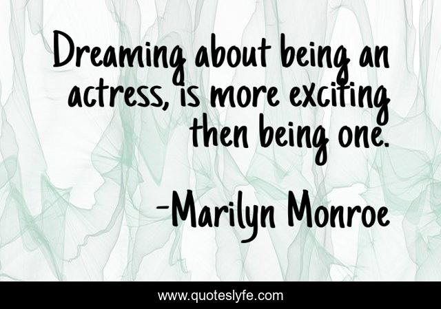 This page presents the quote "Dreaming about being an actress, is more exciting then being one.". Author of this quote is Marilyn Monroe. This quote is about aspirations, disillusionment, disappointment, goals,.