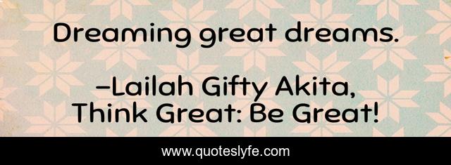 "Lailah Gifty Akita, Think Great: Be Great! Quotes." Quoteslyfe.com, 2025. Mon. 08 Dec. 2025. <https://www.quoteslyfe.com/quote/Dreaming-great-dreams-95348>.