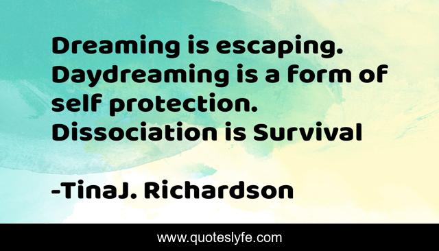 This page presents the quote "Dreaming is escaping. Daydreaming is a form of self protection. Dissociation is Survival". Author of this quote is TinaJ. Richardson. This quote is about dissociation, autism, dreaming,.