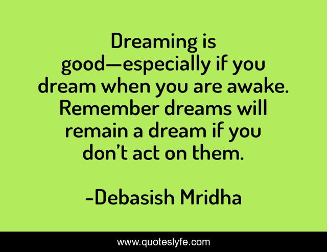 "Debasish Mridha Quotes." Quoteslyfe.com, 2025. Sat. 06 Dec. 2025. <https://www.quoteslyfe.com/quote/Dreaming-is-good-especially-if-you-dream-24138>.