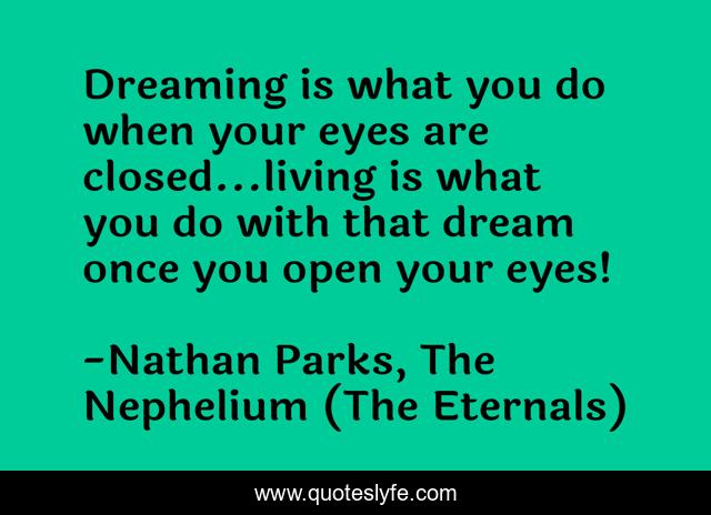 "Nathan Parks, The Nephelium (The Eternals) Quotes." Quoteslyfe.com, 2025. Fri. 05 Dec. 2025. <https://www.quoteslyfe.com/quote/Dreaming-is-what-you-do-when-your-43969>.