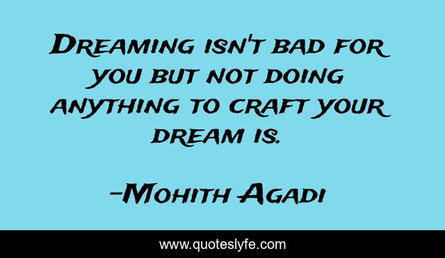 This page presents the quote "Dreaming isn't bad for you but not doing anything to craft your dream is.". Author of this quote is Mohith Agadi. This quote is about business, entrepreneur, quote, quotes, mohith-agadi, quotes-by-mohith,.