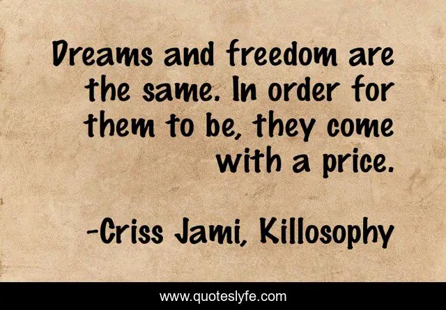 "Criss Jami, Killosophy Quotes." Quoteslyfe.com, 2025. Sat. 06 Dec. 2025. <https://www.quoteslyfe.com/quote/Dreams-and-freedom-are-the-same-In-92112>.