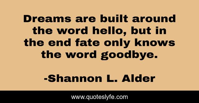 "Shannon L. Alder Quotes." Quoteslyfe.com, 2025. Sun. 14 Dec. 2025. <https://www.quoteslyfe.com/quote/Dreams-are-built-around-the-word-hello-153676>.