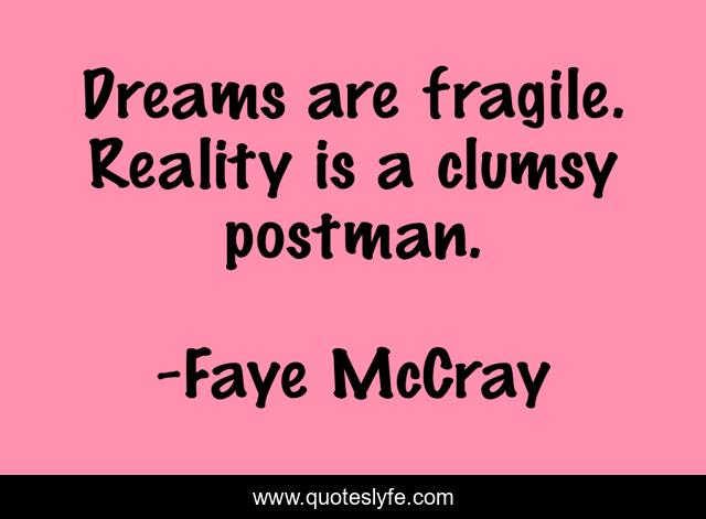"Faye McCray Quotes." Quoteslyfe.com, 2025. Sat. 13 Dec. 2025. <https://www.quoteslyfe.com/quote/Dreams-are-fragile-Reality-is-a-clumsy-181455>.