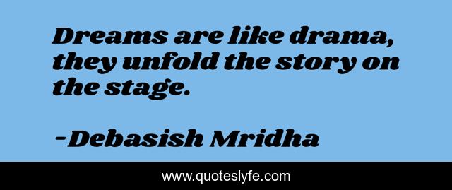 "Debasish Mridha Quotes." Quoteslyfe.com, 2025. Sat. 06 Dec. 2025. <https://www.quoteslyfe.com/quote/Dreams-are-like-drama-they-unfold-the-54131>.