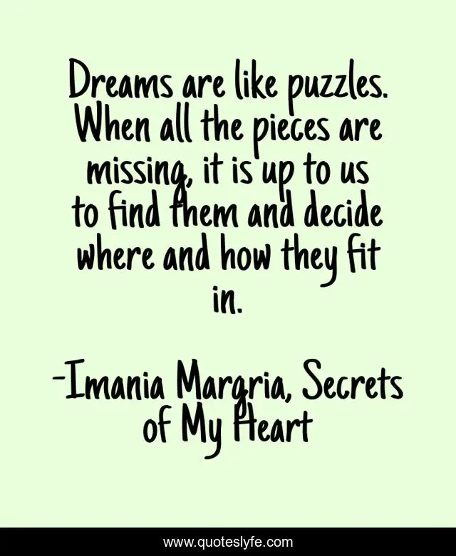 "Imania Margria, Secrets of My Heart Quotes." Quoteslyfe.com, 2025. Fri. 05 Dec. 2025. <https://www.quoteslyfe.com/quote/Dreams-are-like-puzzles-When-all-the-47739>.