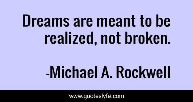 This page presents the quote "Dreams are meant to be realized, not broken.". Author of this quote is Michael A. Rockwell. This quote is about dreams, writing,.