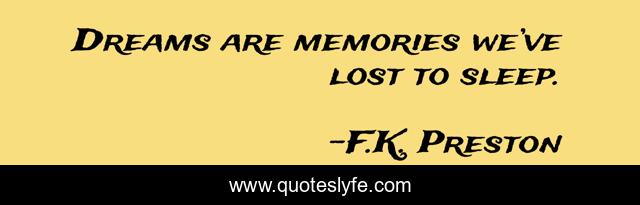 "F.K. Preston Quotes." Quoteslyfe.com, 2025. Fri. 05 Dec. 2025. <https://www.quoteslyfe.com/quote/Dreams-are-memories-we-ve-lost-to-53559>.