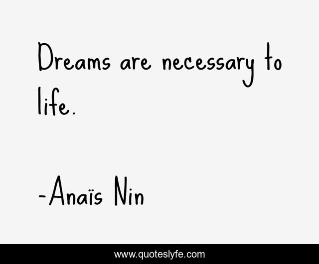 This page presents the quote "Dreams are necessary to life.". Author of this quote is Anaïs Nin. This quote is about life, dreams,.