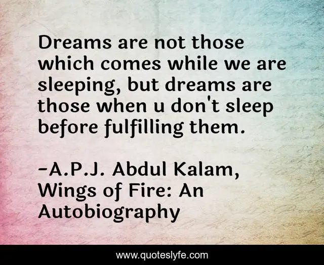 "A.P.J. Abdul Kalam, Wings of Fire: An Autobiography Quotes." Quoteslyfe.com, 2025. Sat. 06 Dec. 2025. <https://www.quoteslyfe.com/quote/Dreams-are-not-those-which-comes-while-13993>.