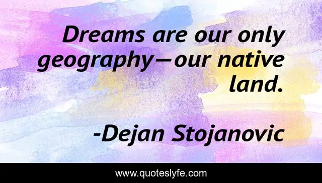 This page presents the quote "Dreams are our only geography—our native land.". Author of this quote is Dejan Stojanovic. This quote is about land, dejan-stojanovic, poetry, wisdom, quotes, literature, dreams, thoughts, geography,.