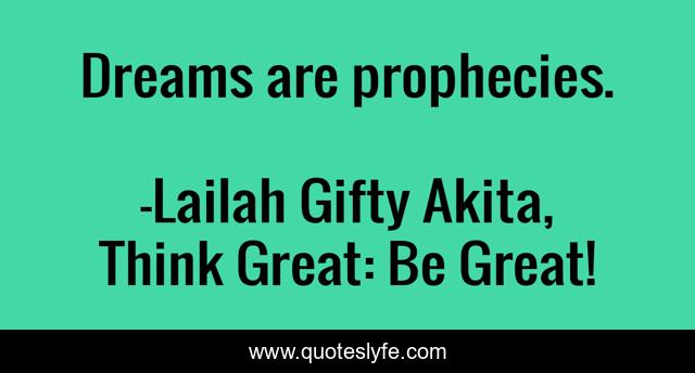"Lailah Gifty Akita, Think Great: Be Great! Quotes." Quoteslyfe.com, 2025. Mon. 08 Dec. 2025. <https://www.quoteslyfe.com/quote/Dreams-are-prophecies-172868>.