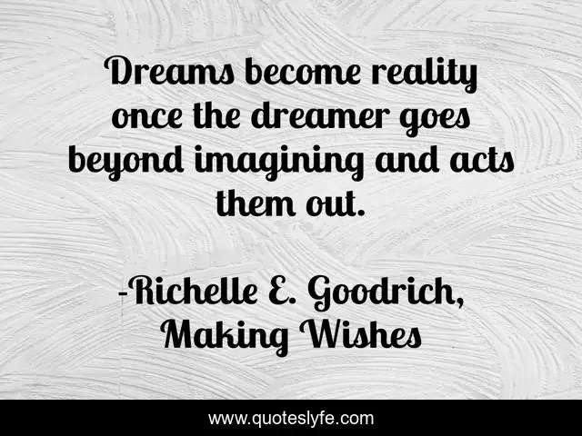 "Richelle E. Goodrich, Making Wishes Quotes." Quoteslyfe.com, 2025. Fri. 05 Dec. 2025. <https://www.quoteslyfe.com/quote/Dreams-become-reality-once-the-dreamer-goes-94301>.