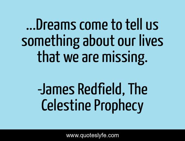 This page presents the quote "...Dreams come to tell us something about our lives that we are missing.". Author of this quote is James Redfield, The Celestine Prophecy. .