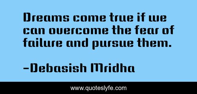 This page presents the quote "Dreams come true if we can overcome the fear of failure and pursue them.". Author of this quote is Debasish Mridha. This quote is about life, love, knowledge, inspirational, intelligence, philosophy, wisdom, quotes, affection,.