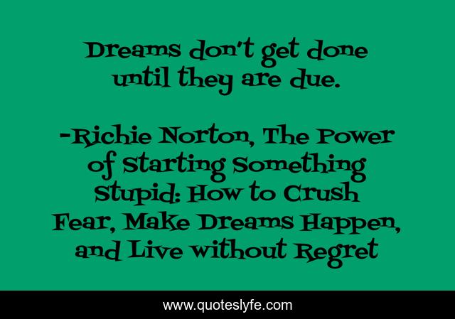 "Richie Norton, The Power of Starting Something Stupid: How to Crush Fear, Make Dreams Happen, and Live without Regret Quotes." Quoteslyfe.com, 2025. Fri. 05 Dec. 2025. <https://www.quoteslyfe.com/quote/Dreams-don-t-get-done-until-they-131428>.