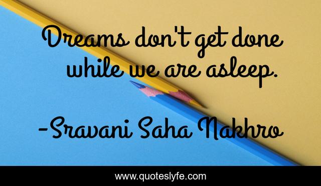"Sravani Saha Nakhro Quotes." Quoteslyfe.com, 2025. Sat. 06 Dec. 2025. <https://www.quoteslyfe.com/quote/Dreams-don-t-get-done-while-we-208316>.