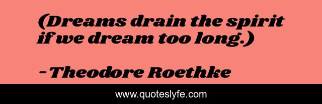 This page presents the quote "(Dreams drain the spirit if we dream too long.)". Author of this quote is Theodore Roethke. This quote is about daydreaming, wishing, dreaming,.