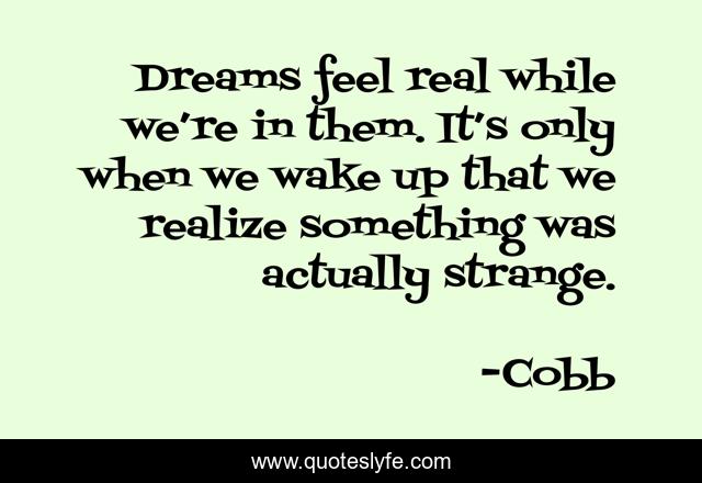 "Cobb Quotes." Quoteslyfe.com, 2025. Sun. 07 Dec. 2025. <https://www.quoteslyfe.com/quote/Dreams-feel-real-while-we-re-in-53539>.